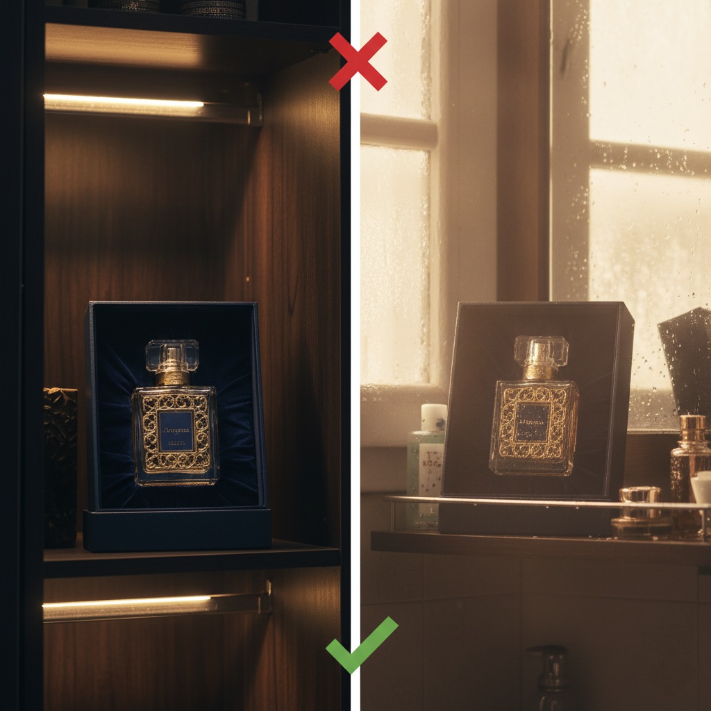 لا تدمر هذه التركيبة بإهمال بسيط. توقف عن حفظ العطور في الحمام أو في الشمس. احفظها في “دولاب ملابسك” وستضمن أن كل رشة ستكون قوية وفواحة تماماً كالرشة الأولى.